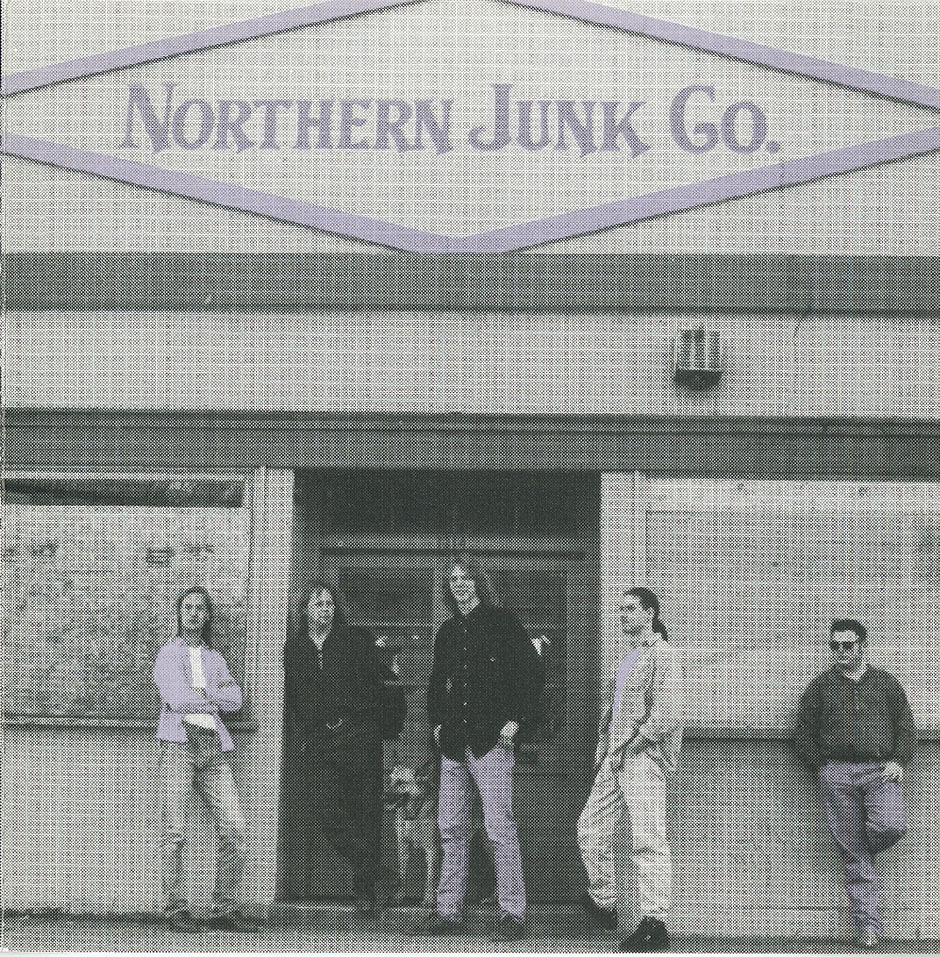 Self-produced debut CD from dynamic Victoria B.C. alternative folk-rock band Northern Junk. The group was only commercially available on the rare Rocktoria IV compilation, as their full length CD was not released commercially. Evidently consisting entirely of Canadians from Icelandic descent, brothers Kris and Lindy Vopnfjord continue to be very successful, now in a more Folk-Indie direction. Bassist Tyson Maiko also went onto success, playing in Vancouver punk rock group Gob. The cover shows something of a historical land-mark for Victoria, as it has the group standing in front (and behind) of the actual Northern Junk Co. building, which has been empty for over 50 years.