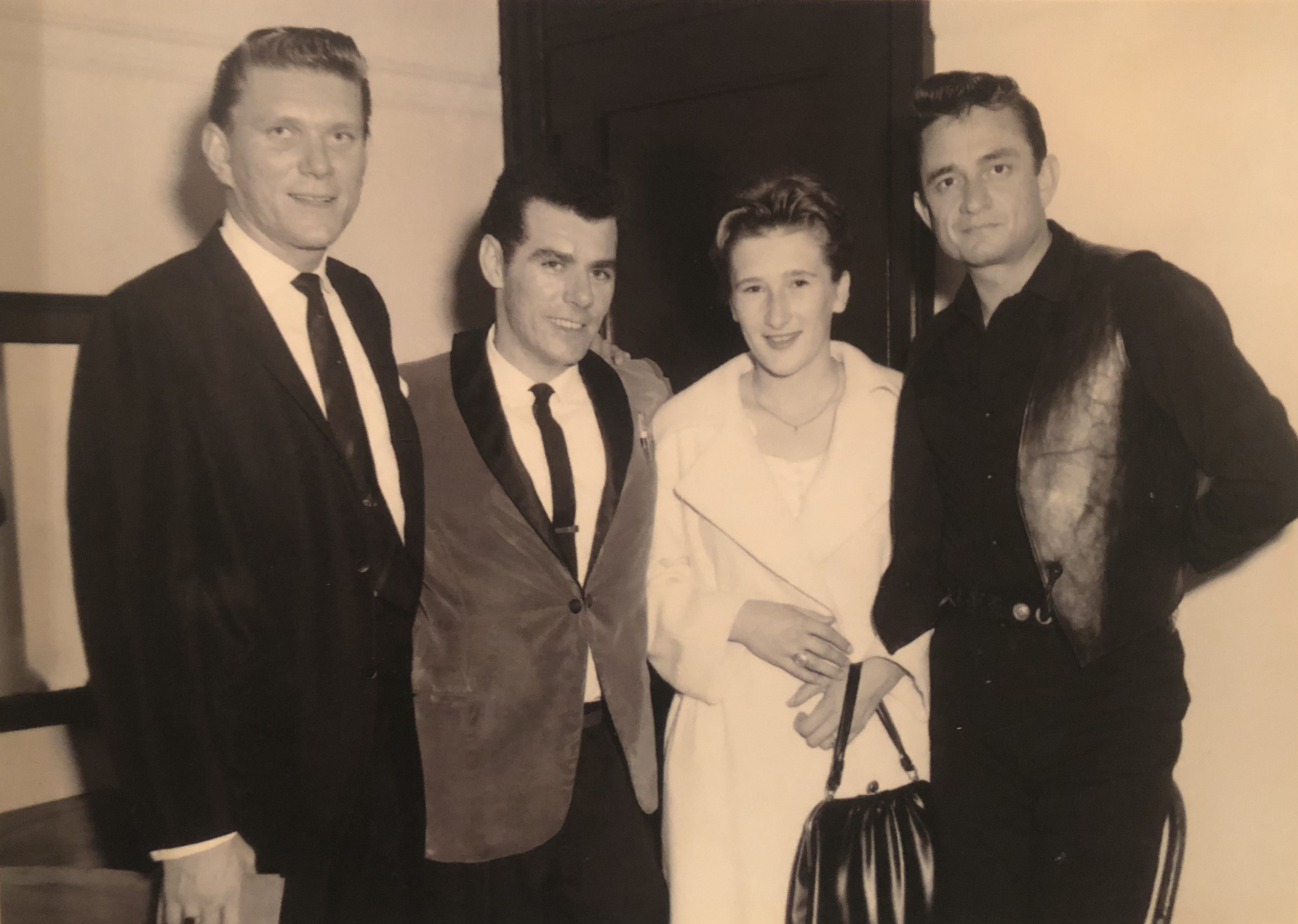 My Dad opened two shows for Johnny Cash at Massey Hall in the 60's. They became friends. My mother and Tommy Hunter are the others in the photo. "Bud the Spud" was written by Stompin Tom Connors about his truck-driving friend, Bud Roberts.