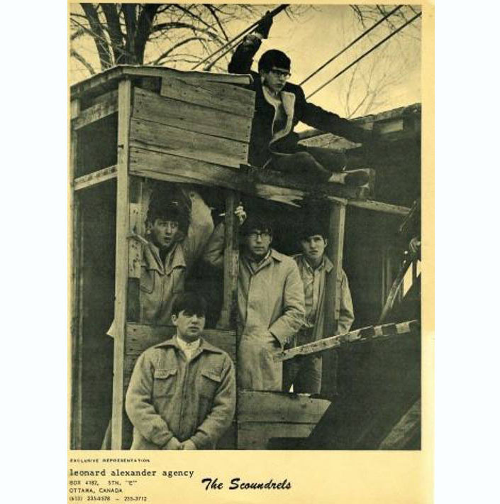 Ottawa’s The Scoundrels (with an “S”) were a group of Woodroffe High School students who came together in 1962. Their early gigs usually meant performing covers of songs by Del Shannon & the Ventures among others. Their first paying gig, at St. Basil’s Church, went over extremely well with the band taking home a grand total of $5. They were eventually signed by Sandy Gardner (an Ottawa Journal music columnist) as their manager who was also managing the Staccatos and Townsmen. With their name changed to The Scoundrelz (with a “Z”), they released one single in 1966 on Red Leaf Records – a garage rock rendition of “Heartbreak Hotel” that had been recorded at RCA Studio in Montreal. The record went to No.1 on Ottawa radio by October that year. With the success of “Heartbreak Hotel” – and its B-side “Poor John” – the Scoundrelz would have successful gigs in Montreal and across Southern Ontario. The group was extremely popular in Ottawa, having one of their appearances called off when 1000 fans crammed into a church basement designed for 300. The end of 1966 saw the Scoundrelz on the verge of signing with Capital Records. They went in to the studio with producer Ted Gerrow to record their second single. While in the studio Buddy Stanton announced he was leaving the band to join the Townsmen and The Scoundrelz were effectively over. Capitol was no longer interested but Red Leaf decided to release the single a second single, “To a Lovely Lady”, under the name Nobody later that year. with notes from Ian McLeish and David Sampson.