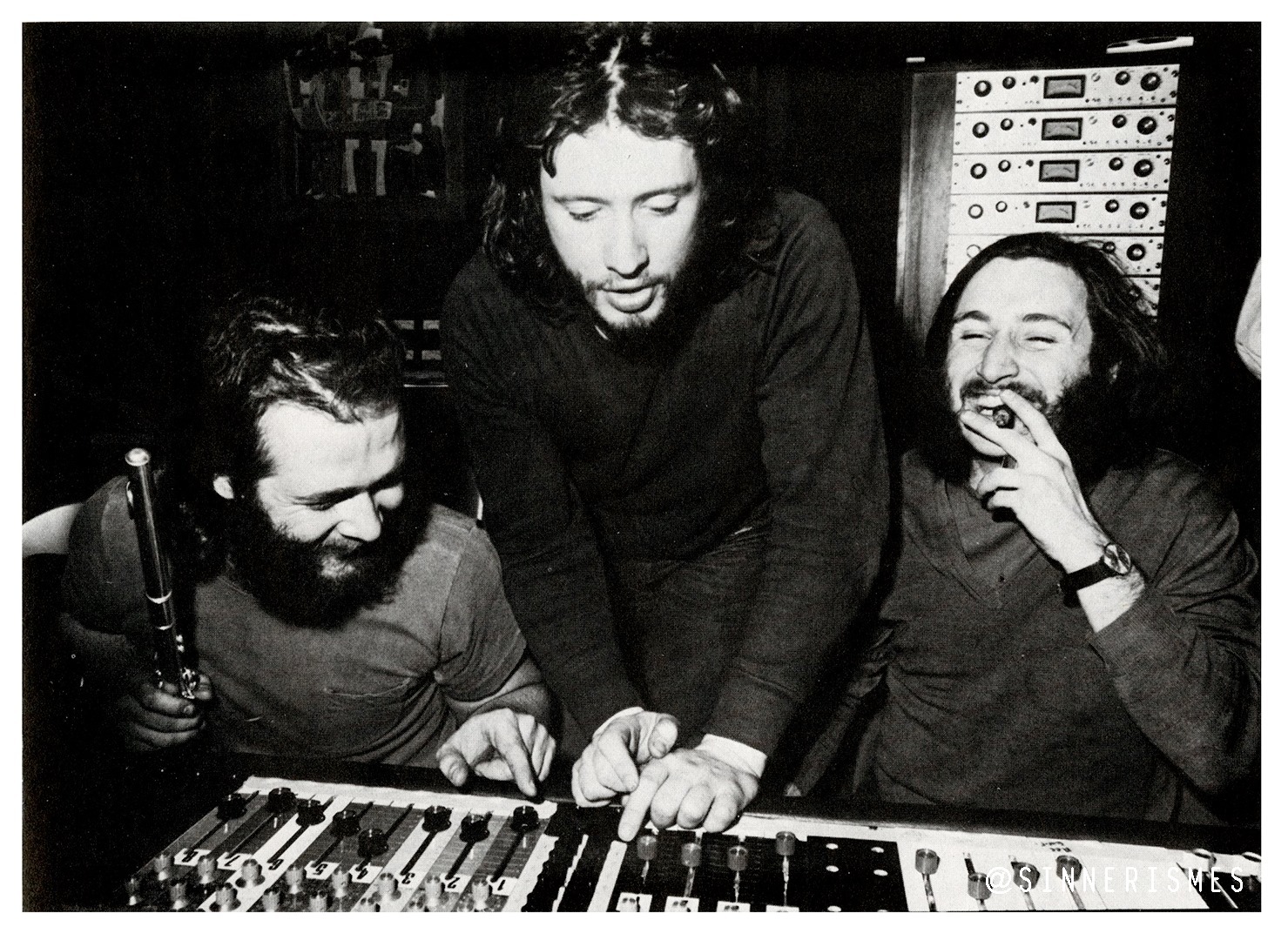 Au milieu des coups d'éclat et des déclarations fracassantes, les membres se succèdent, mais l'esprit demeure, pendant la première partie de leur étonnante carrière du moins. De leurs premiers élans, au milieu de la décennie, il nous reste trois 45 tours et un album: "Sinerisme" (sic), devenu un des plus recherchés parmi les adeptes de cette époque. C'est toutefois avec leur reprise de la première chanson ouvertement psychédélique des Beatles "Penny Lane" que le groupe réussit à s'imposer sur les ondes, au moment où leurs amis des Mersey's font de même avec une chanson que les Sinners avaient déjà à leur répertoire "Je suis las" ou plus exactement "L'herbe est verte mais je suis las" tel qu'inscrit sur le 45 tours London, étiquette choisie pour la simple raison que c'était celle des disques des Rolling Stones!