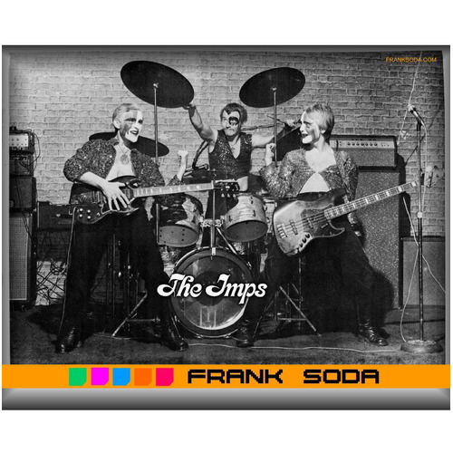 Between 1975 and 1976, the Imps began to gain a cult following. Frank began writing songs, and T.V. People soon became an anthem in the local Toronto clubs. This marked the beginning of the exploding head gear. Since the song was about getting "screwed up" or brainwashed by watching too much television, Frank decided to illustrate this by exploding a t.v. on his head. In Detroit they got the same pyro equipment that Kiss and Truimph were using. Soon the Imps live shows were known for high energy with outrageous antics. He soon added other exploding head gear such as the Moon Man, Smoking Pig, and took the audiences' picture with a gigantic camera on his head in the song Take my Picture Please.