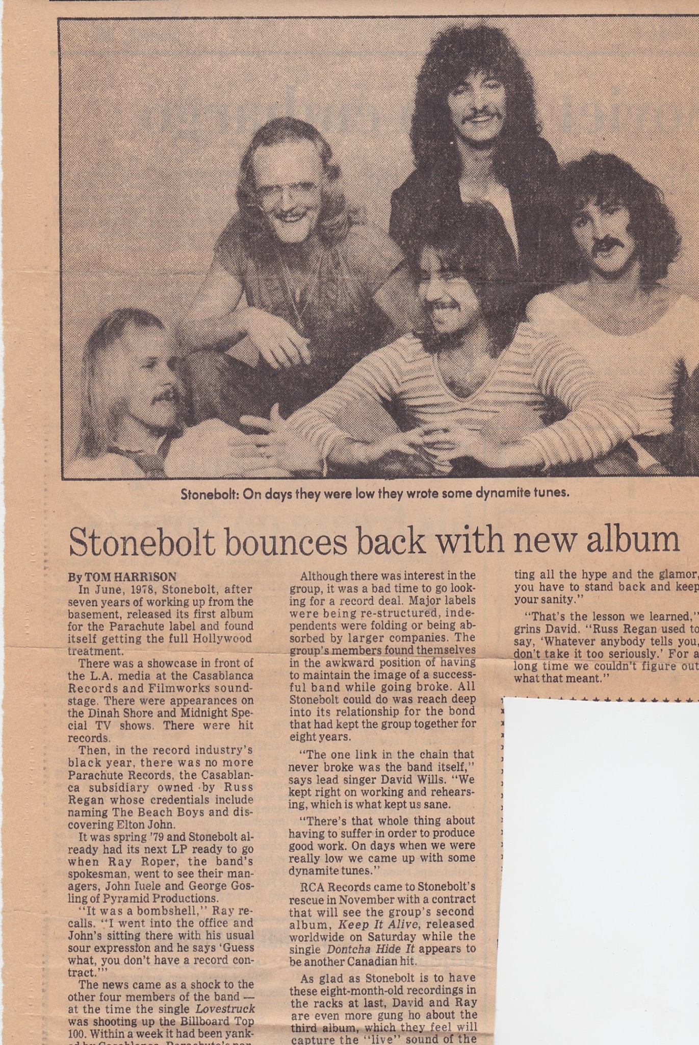 Stonebolt was formed in Vancouver, BC in 1973, but the roots of the band stretch back to the late 60's when high school friends Ray Roper, Brian Lousley, and Dan Atchison played together for local teen dances. In 1976 the band secured a recording contract with Parachute Records and released one album before the label folded and the band moved to RCA for three more albums during the early '80s. In Canada, Stonebolt became a popular radio act with a number of hit singles topping the Canadian charts, but it want until the ballad "I Will Still Love You" became an international hit in 1978 that Stonebolt became more recognized and wordwide stars. The band had hits in the U.S., Europe, and Japan, and has played concerts as far away as Osaka, Japan, and made regular appearances on national TV shows such as American Bandstand and Midnight Special. In 1983 the band broke up due to label conflicts and changing musical trends. Regeneration is the first CD release of music by Stonebolt. This album contains 16 songs that include all of the bands' hits together, with key album tracks and a new song recently recorded by the reformed band . The sound quality on this CD is superb and the booklet contains detailed information on the band, a history, commentary on each song in the set, and archival pictures of the band members and memorabilia. Stonebolt was a Canadian band that achieved international stardom but became lost in the '80s. With this release the band can now be once more discovered by today's generation of music lovers.