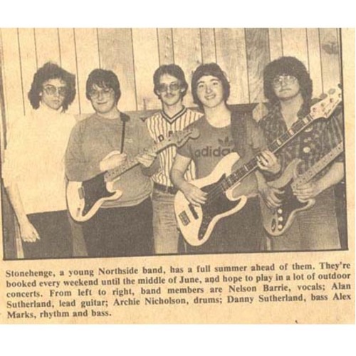 Stonehenge formed in Cape Breton in 1979 with players aged 12 to 16. They played clubs and taverns all over Cape Breton Island.