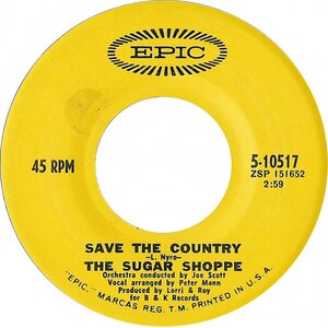 The Sugar Shoppe then joined Epic Records, and in 1969 released a version of Laura Nyro's "Save the Country", and performed it on the Ed Sullivan Show July 6, 1969, which used an arrangement later borrowed by the 5th Dimension. However, it was not a commercial success. The group continued to perform, mainly in Canada, before Mann and Harris left in 1970. Garber and Hood then formed The Shoppe with Sandy Crawley. They recorded the soundtrack for a TV series based on Greek mythology in 1971, and recorded several tracks issued on anthologies. By 1973, the group had finally disbanded.