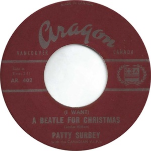 Surbey's first single, "(I Want) A Beatle for Christmas," is one of the few Beatles-related novelty records that is worth listening to. Several records with this title were released around this time, but Surbey's is a different song. Released as Aragon #402, it featured another Christmas tune on the flip side. That song, "Christmas All Year 'Round," is a mid-tempo number that says we can make Christmas come every day by being nice. Aragon allegedly leased the master to Los Angeles' World Pacific Records for release in the United States, but I haven't found any evidence of a World Pacific pressing.