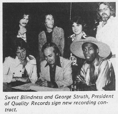 The Canadian soul/disco band Sweet Blindness had its roots in a local Toronto bar band named The Statlers (not to be confused with the US soul group) founded by Bobbi Dupont and Phil Smith in 1967. In 1969 a few members of The Statlers jammed with another local bar band named The Jax and out of this session emerged a new unit named Toronto's Sweet Blindness. They dropped the Toronto part of the name after American guitarist Curtis Lee joined them in 1974. Between '74 and '77 they released a number of singles and 2 LPs: "Sweet Blindness" ("Music You Can Ride On" in USA) and "Energize". They broke up soon after their second album.