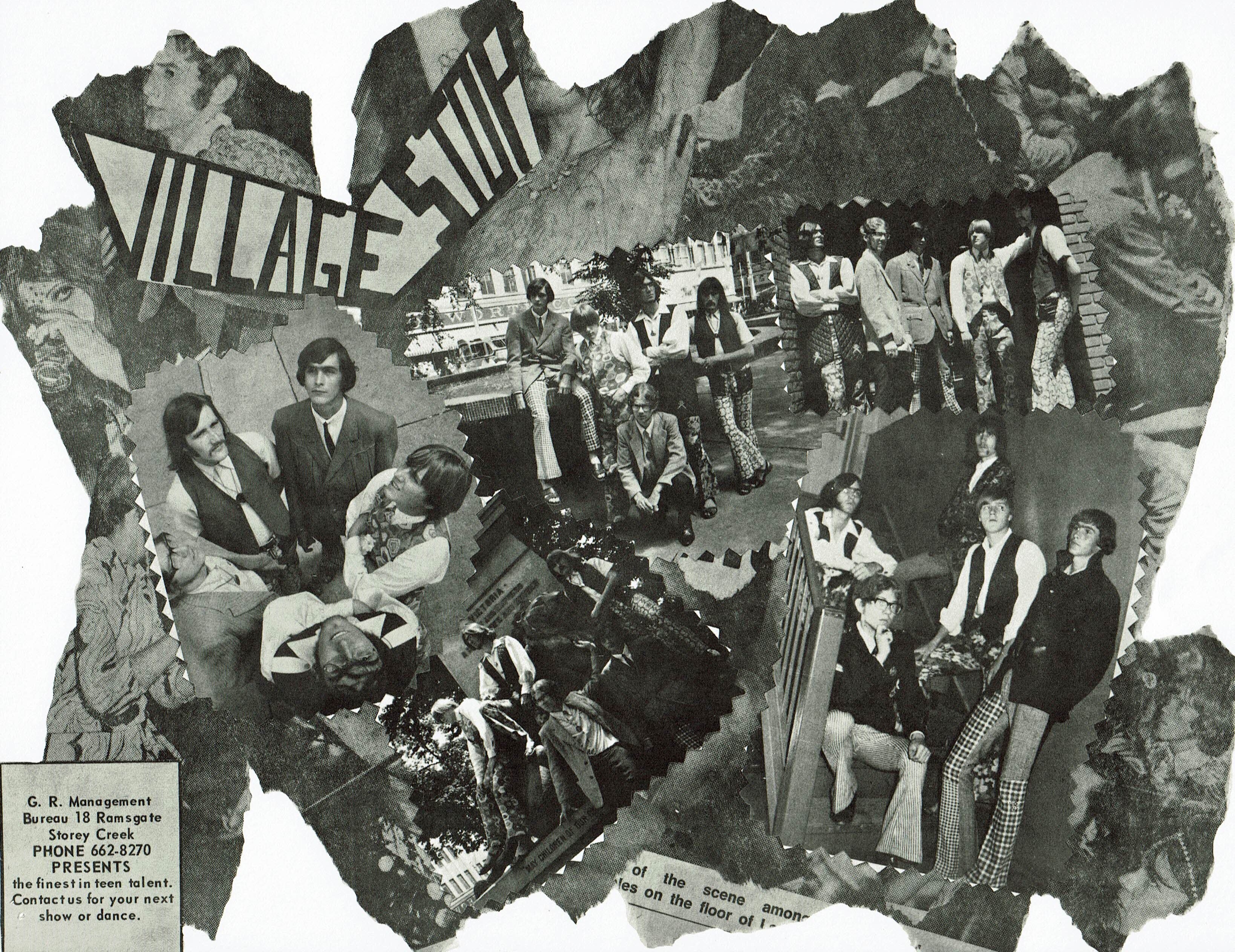 The first vocalist in the band was Bill, a red-haired Mick Jagger look-a-like who had good stage presence and energy, but lacked in vocal quality. After some searching we added a fifth member (Al Pope) who had a fair voice and a look the band required (long black hair, charming to the women). Over the next while the band evolved, matured musically, began gaining a following in the local teen dance scene and changed the name to S.T.O.P. (Sound’s Typical Of People). The Village part was added later because of the "Yorkville" happening in Toronto and "Greenwich Village" in New York, at the request of a manager we soon acquired as we were becoming popular. He felt it would be more "in" with the music scene at that time.