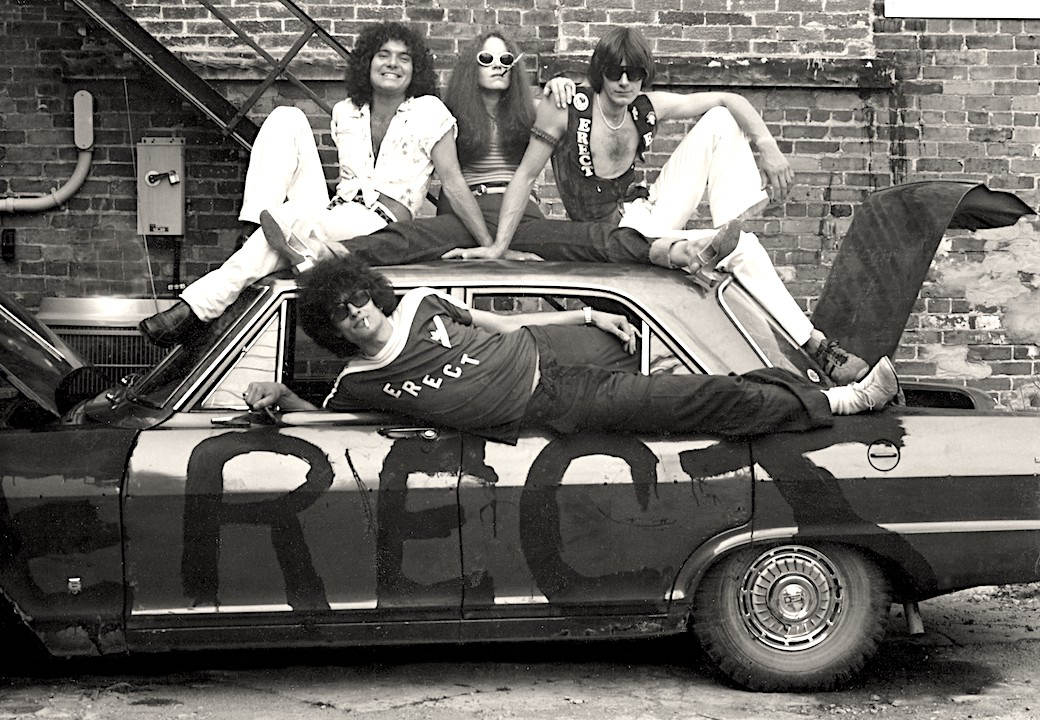 Photo left: (Left to Right) The drummer Peter Whittington, Angela Camp, Peter Molloy and Andy Camp below. That was the earliest Erect lineup in Midland, Ontario