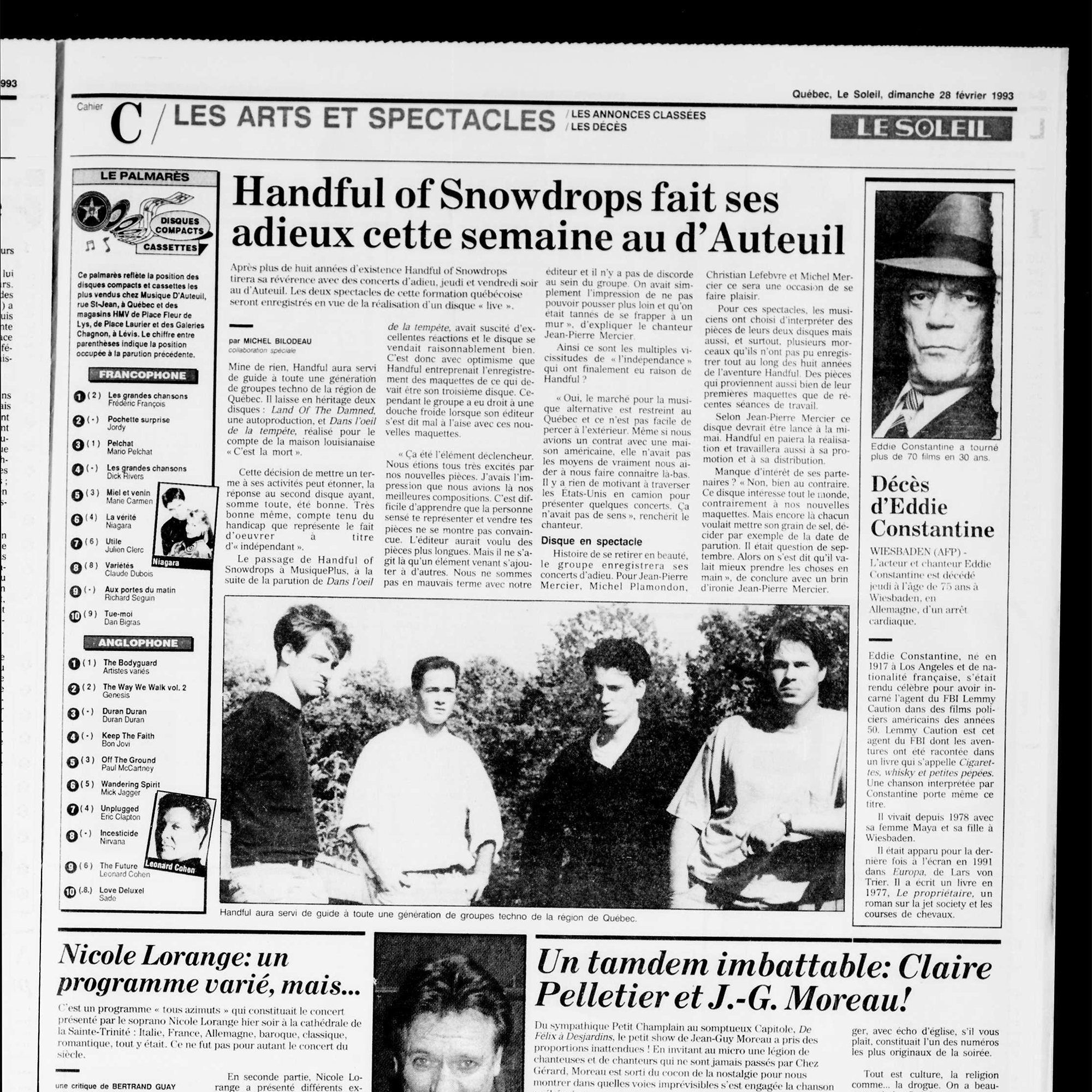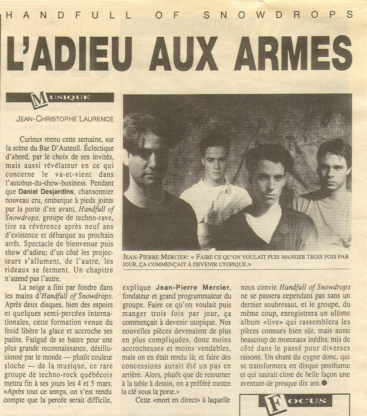 In 1993, when HoS submitted a demo of a tentative but once again quite different third album to their editor who decided to turn it down, Jean-Pierre express is desire to retire to his bandmates. The band decided to record their two march 1993 farewell concerts and released the output titled "Mort en direct", the same year before calling it quits for good.