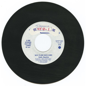 Her mother’s faith in her daughter’s talent and potential brought her to the attention of Paul Zaza of Zaza Sound Productions in Toronto for a demo. Cruickshank, armed with Zaza’s demo proceeded to sound out the Canadian music industry. The interest in their product convinced Zaza and Cruickshank to launch their own label this month to be known as ZSP Records with an Emily Quattrin single — “Someone’s Gotta Make You Smile” backed with “Next Plane Back Home”. Negotiations are currently under way with George Strut of Quality Records to distribute the ZSP label nationwide. Other songs and artists in the lineup will be announced shortly. Emily will also be working on an album of her own songs this summer with Paul Zaza.