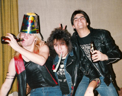 In an awesome twist of fate, 3 years later we were opening for Anvil at the El Mocambo in Toronto, when Steve Harris and Adrian Smith walked in and sat down right in front of us in the middle of our set. They had flown up from the Bahamas, to promote a line of Canadian guitars that they endorsed, and were taking a break from recording Piece of Mind. Pete and I gaped wide-mouthed at each other in utter disbelief!!! Here was Iron Maiden, watching us 15 year olds play Iron Maiden songs. I nearly pissed myself later when Steve Harris told me backstage over a beer ” you sound a lot like Paul Dianno, mate” (Maiden’s first singer).