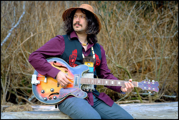 Saltwater Hank is a singer and songwriter based in British Columbia, and a member of the Ts’msyen (sometimes spelled Tsimshian) people. From what I’ve heard of his recordings, the traditions of music are of particular importance to him, as he’s explored the origins of folk and country, even in his original material. His new release is something truly unusual and special, Titled G̱al'üünx Wil Lu Holtga Liimi, this album is delivered entirely (or nearly entirely) in Sm’algyax, the Ts’msyen language. Some of the tracks are traditional Ts’msyen songs, while others are original compositions by Saltwater Hank. And one of them is a Hank Williams cover, delivered in Sm’algyax. Again, this album is something special. Saltwater Hank plays both guitar and fiddle, focusing on guitar on this release. Joining him are Liam Meivor on lap steel and bass, and Danny Bell on drums, with Chloe Nakahara joining on fiddle on a couple of tracks.