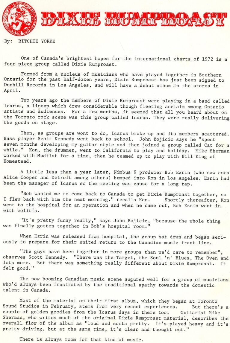 When Toronto rockers Dixie Rumproast finally released their long-lost 1972 album Well Done through Pacemaker Entertainment in 2020, few could have predicted that the record’s resurfacing would result in the resolution of an almost 50-year-standing Rock and Roll mystery.