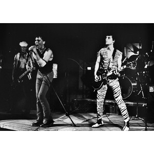 The problem for the 222’s, however, is that we didn’t really fit into this little punk scene either. For starters, Pierre, Louie and Belleau were all fairly capable musicians and weren’t particularly ashamed of the fact either, resulting in a lot of hostility being sent our way by many of the local “punks” who’d decided that carefully crafted songs and musicianship beyond the level of Sid Vicious was antithetical to their carefully studied punk stance. Further, our immediate roots were as much in the early ‘70s glam tradition as they were in the spirit of the Ramones or the Pistols, bands which we viewed as a natural extension of the Dolls/Stooges/Alice Cooper school we’d all been weaned on. Exasperating the situation, our first manager, Pyer Desrochers, was an outrageously arrogant boutique owner a la Malcolm McClaren who fashioned us in Chairman Mao T-shirts, day-glo orange leather, zebra skin pants, and a whole lot of accessories which suggested we were as concerned about our visual appearance as we were with the “punk revolution.” And, of course, we were. In contrast to the Chromosomes, whose primary focus seemed to be fixated on heroin, or the Normals, who I vaguely recall as having a somewhat political bent, the 222’s were profoundly obsessed with sex, and rock and roll was, needless to say, a very convenient vehicle in which to lure the necessary participants required to engage in the relatively debaucherous sexual activities most of us were interested in. Not only were the 222’s, from fairly early on in the game, capable of drawing an actual, and increasingly diverse, crowd to our relatively sporadic gigs, but there were always lots of girls at our shows – two things, I imagine, which also helped nurture much of the growing animosity/jealousy between our band and so many among the largely male-dominated Montreal punk scene. That said, I suspect our own undeniable arrogance and sense of superiority didn’t help the situation much either.