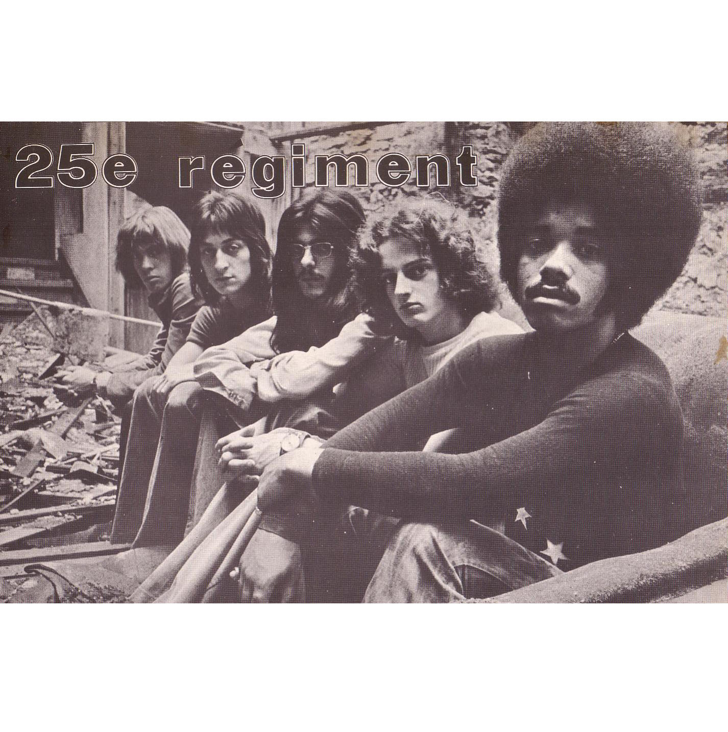 The Regiment now has in its ranks a new guitarist-singer who succeeds Guy Limoges, in the person of Karol Dicaire, until then a member of Les Astérix. We are in the summer of 1968 and the group which has the wind in its sails joins l'Agence P.G., directed by Pierre Gravel and which sees to the careers of a large number of groups, from les Topazes et les Mousses to Intrigantes and Les Sinners, including Les Gants Blancs and Les Hou-Lops. While they rush into new musical avenues of psychedelia and other underground trends on stage, their record production is moving in other directions. We can thus hear the 25th Regiment attacking a song by La Bolduc "Le petit bonhomme avec le nez pointu" or by La famille Soucy with "Les fraises et les ramboises" renamed "Les fraises à bicyclette".