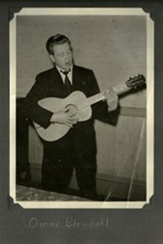 Like many children of immigrants, Omar Blondahl, who grew up in Winnipeg, did not start speaking English until he began school. By the time he reached high school he had studied piano, violin, voice, and music theory, and had performed in local Gilbert and Sullivan operettas. By his late teens he was working in radio dramas. In 1943, following several years of Army service, he returned to radio, working for the next eight years at radio stations in western Canada as a dj, announcer, and performer. As a performer he was involved in drama and music. He played some fiddle but mainly rhythm guitar in old-time music orchestras and sang folksongs to his own guitar accompaniment as a soloist.