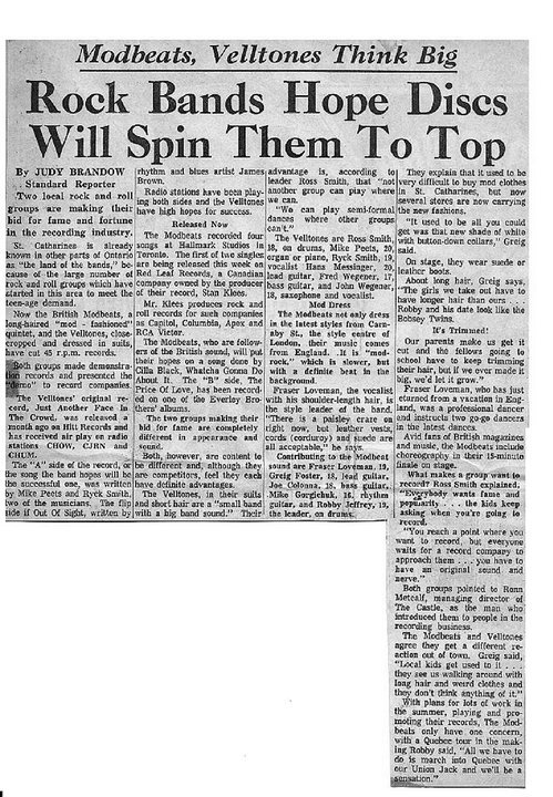 When you think of Mod music from the sixties that came out of Canada, The Modbeats are THE reference. They came out of the unlikely small city of St. Catharines, Ontario in the Niagara region. That didn't stop them from making a lasting impact on the thriving North American garage and psychedelic scene of that era.