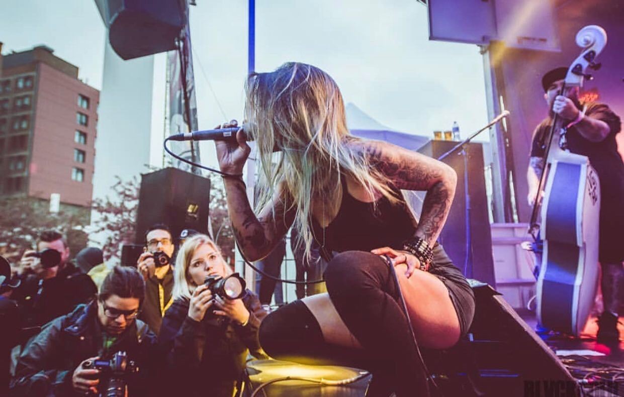 Which brings us to the epic new album “Death At My Door” released in September '17. Ten tracks of raging, bloodcurdling and raucously rebellious fury showcase the very best from this roadharderned group of beautiful misfits. The haunting vocal stylings of Kenda Legaspi soar seamlessly over Chuck Coles’ buzzsaw sharp guitar lines and the ragtime gospel organs/keys of the Reverend McGinty; all the while held together by the hard-driving stand-up double-bass slapping rhythms of Sean McNab and the impossibly violent percussive assault of Sandro Sanchioni on drums. From the defiant and empowering “Sticks & Stones” and the incredibly anthemic “Til Death Do Us” to the circle-pit inducing “Tomorrow May Never Come” and the eerily heartwrenching ballad “My Soul To Keep”, Death At My Door is a diverse and addictive album from a genre-defying band who are at the very top of their game… Don’t sleep on this one, because you never know what’s waiting for you just outside your door.