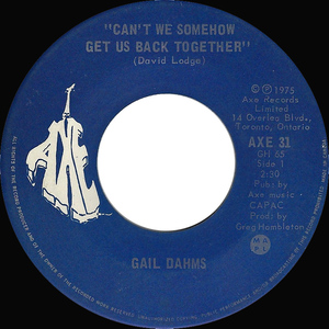 Gail Dahms was born on June 27, 1957 in Kitchener, Ontario. She was working in a French language version of South Pacific when she was spotted by an executive at Axe Records. She was still in high school when she signed a 5 year recording contract with the label. She had one hit, “Can’t We Somehow”, in 1976 but continued to work as a singer and actor. She is probably best known for her role in a Smiles & Chuckles Turtles chocolate commercial where she plays a Marilyn Monroe character who dances with turtles and sings the line “Oooo, I love Turtles”. She is now known as Gail Dahms-Bonine. Her only singles to hit the Canadian charts were "Can't We Somehow" and "Rescue Me," both in 1976.