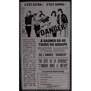 Danger is one of the first French-speaking punk bands in Quebec in the 70's. Danger est l'un des premiers groupes punk francophones au Québec des années 70.