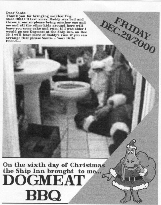 At the present time, Dog Meat BBQ are performing to odd gig around St. John's, and beginning preparations to record their next CD. They are also slated to play at the International Sound Symposium in St. John's in July 2000.