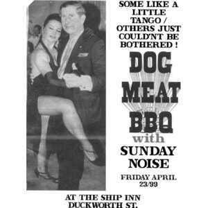 Dog Meat BBQ made their first public appearance in June 1986 at the Peace-a-Chord, an annual alternative music festival held in Bannerman Park, St. John's. As Justin was unavailable for this gig, drumming duties were performed by Danny Thomas, who would later go on to play in The Thomas Trio and the Red Albino.