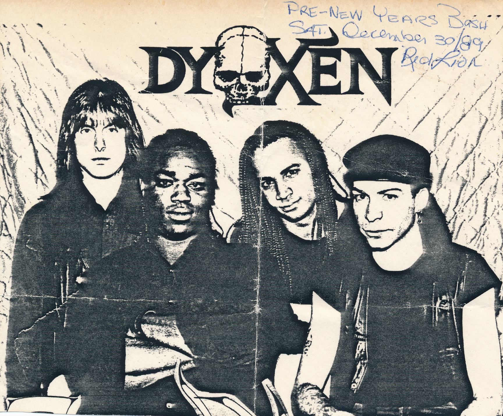 Dyoxen was formed in 1989 by guitarist/vocalist Michael Sanders. Eventually a lineup stabilized long enough to record an album, but by the time the album was released, the lineup had already changed. Thus, the lineup below is the actual recording lineup, not the touring lineup listed on the album (Sanders/Kerr/Steve Sinclair/Bret Stacey). First Among Equals' complex, tempo-change-filled thrash style won the band some good reviews, but the album was not promoted well and failed to sell, and coupled with the band members moving apart both musically and personally, spelled the end for the band. Sanders now heads a metal/funk/percussion group entitled OneTribe.
