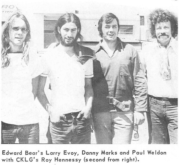 Edward Bear. Toronto rock band formed in the late 1960s as the Edward Bear Revue, a quintet which took its name from a character in A.A. Milne's book Winnie-the-Pooh. It played at first in Yorkville coffeehouses and as a trio began recording for Capitol in 1969. Members 1969-74 were the singer-songwriter-drummer Larry Evoy, the guitarist Danny Marks until 1971, replaced by Roger Ellis, and the organist Paul Weldon until 1972, replaced by Bob Kendall.