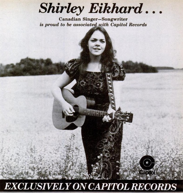 In 1963 the family moved from the Maritimes to Oshawa, Ont. At age 11 Shirley Eikhard began to play guitar and write songs. Following her debut at 12 at a fiddler's contest in Cobourg, Ont, she appeared at the Mariposa Folk Festival (New Songwriters concert) and on CBC TV's Singalong Jubilee. She was signed by Capitol Records at age 14. In 1970, the US guitarist Chet Atkins recorded her instrumental "Pickin' My Way" (the title tune of his LP of the same name). Eikhard was often compared to Anne Murray, who had a modest hit with an early Eikhard song, 'It Takes Time,' in 1971. Eikhard herself recorded in 1971 for Capitol (Shirley Eikhard, ST-6371); had a country hit in 1972 with 'Smiling Wine'; and received Juno awards for 1972 and 1973 as best female country singer. Her LPs 1975-7 for Attic (Child of the Present, LAT-1007; Let Me Down Easy, LAT-1021; Horizons, LAT-1032) documented a selective move toward pop, R&B and rock. A version of a Fleetwood Mac song, 'Say You Love Me,' was popular in 1976. Eikhard performed during the 1970s in clubs, coffeehouses and concert halls across Canada and toured Canada and Europe with performers such as Hagood Hardy (1975), Sylvia Tyson, Lou Rawls, Sonny James, and Lynn Anderson.