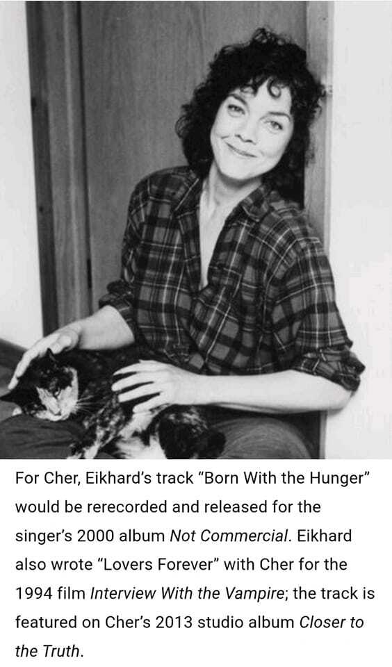 After a discussion about songwriting with Hal David, Eikhard concentrated on composing. She has come to be best known as a songwriter, and has written or co-written songs recorded by the US singers Kim Carnes, Cher, Rita Coolidge, Emmylou Harris, the Pointer Sisters, and Bonnie Raitt. In 1991 Raitt's hugely successful release of Eikhard's "(Let's Give Them) Something to Talk About" (Luck of the Draw) won a Grammy award and skyrocketed Eikhard onto a higher plane of financial freedom and professional respect. Raitt described her experience with recording the track as "like hitting one out of the park, my first number one..." Eikhard has also written songs with the Laurie Bower Singers, Gary Buck, George Fox, Catherine McKinnon, Alannah Myles, Peter Pringle, Ginette Reno, Donna Ramsey, and Sylvia Tyson and Quartette, among others. She has also sung on hundreds of recording sessions with numerous artists.