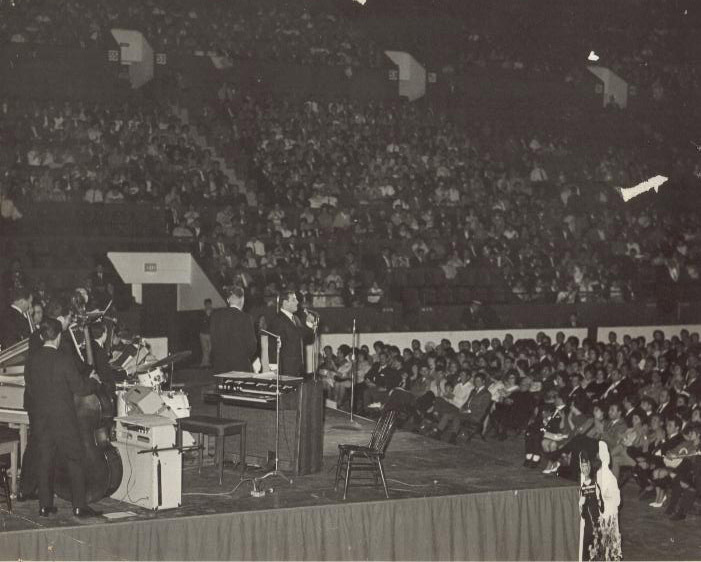 Enrico was able to involve his fans that often would rise and participate by singing along with him.