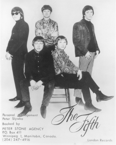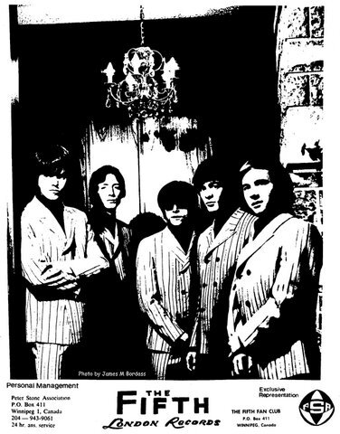 The forerunner of The Fifth was a group called The Saints. All still in high school, they rehearsed in the old Gimli train station and played Interlake regional dances. Starting off as a four-piece in 1964, the original members were: