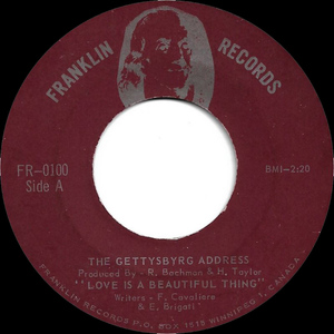 In 2008, Super Oldies Records released a compilation album entitled THE BEST OF FRANKLIN RECORDS – 1967 – 1972, containing all seven Getysbyrg Address songs that appeared on 45. A year later, they released another compilation called FROM CANADA TO CLOVIS, that included the two tracks released as their third single, as well as a pair of unreleased songs – covers of The Beatles’ “Ticket To Ride” and Bobby Bland’s “Stormy Monday Blues.”