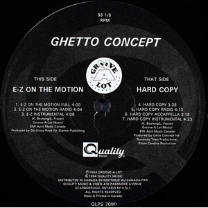 Kwajo Cinqo (Kwajo Boateng) and Dolo (Lowell Frazier) formed Ghetto Concept in 1992, hailing from the Rexdale and Lawrence Heights neighbourhoods of Toronto. Their first single "Certified" was released in 1993, by independent label Groove-A-Lot Records. In 1994, they released "E-Z On Tha Motion" The group won Juno Awards in 1995 and 1996 for "Certified" and "E-Z On Tha Motion", respectively.