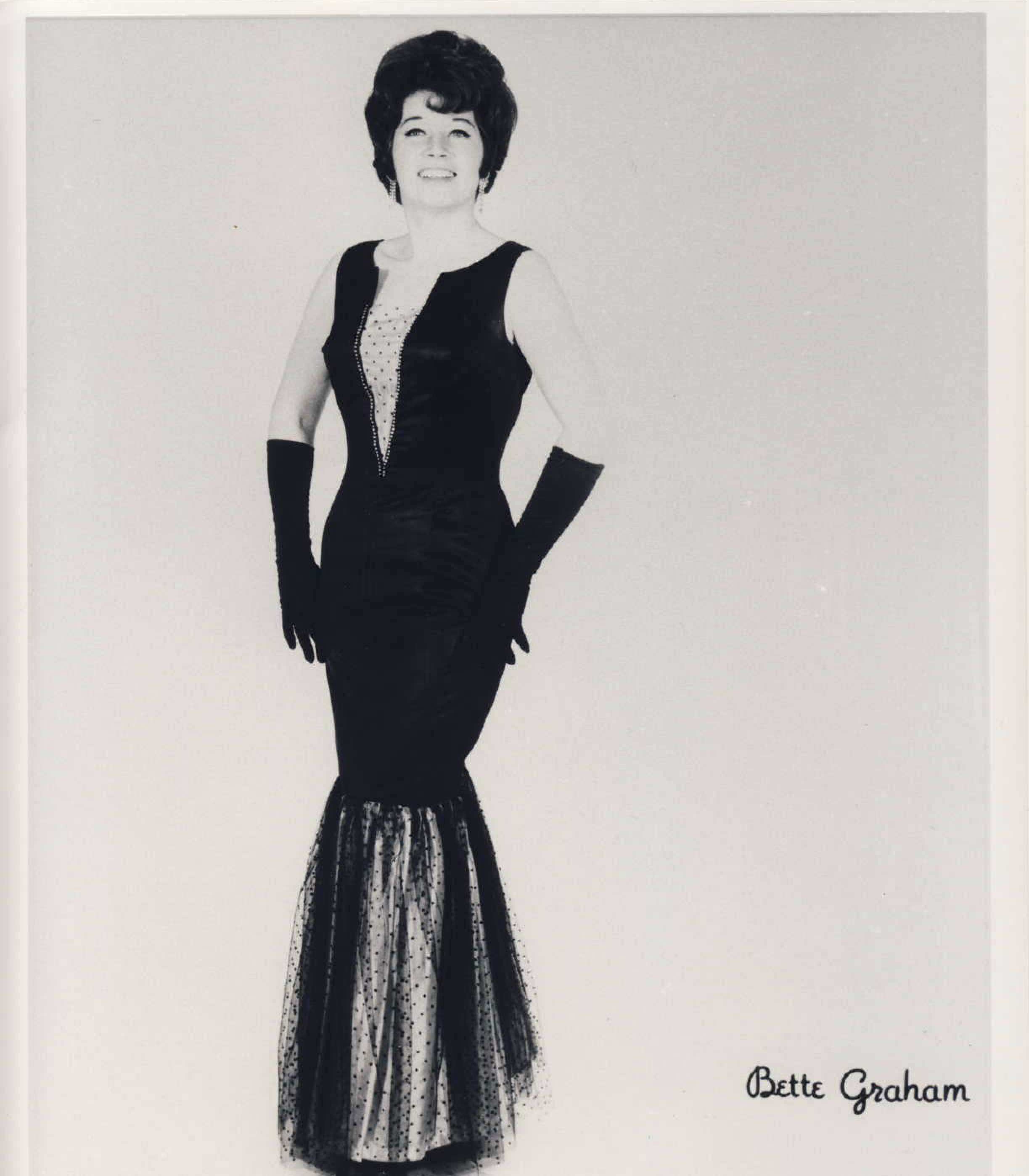 Bette Graham appeared as a Headliner Performer at many night clubs, major hotels and convention shows across Canada. She was an exciting vocalisit/entertainer and always left her audiences applauding for more. Bette had an outstanding stage presentation and was one of Canada's "top flight" entertainers. She appeared on TV and Radio and published two albums.