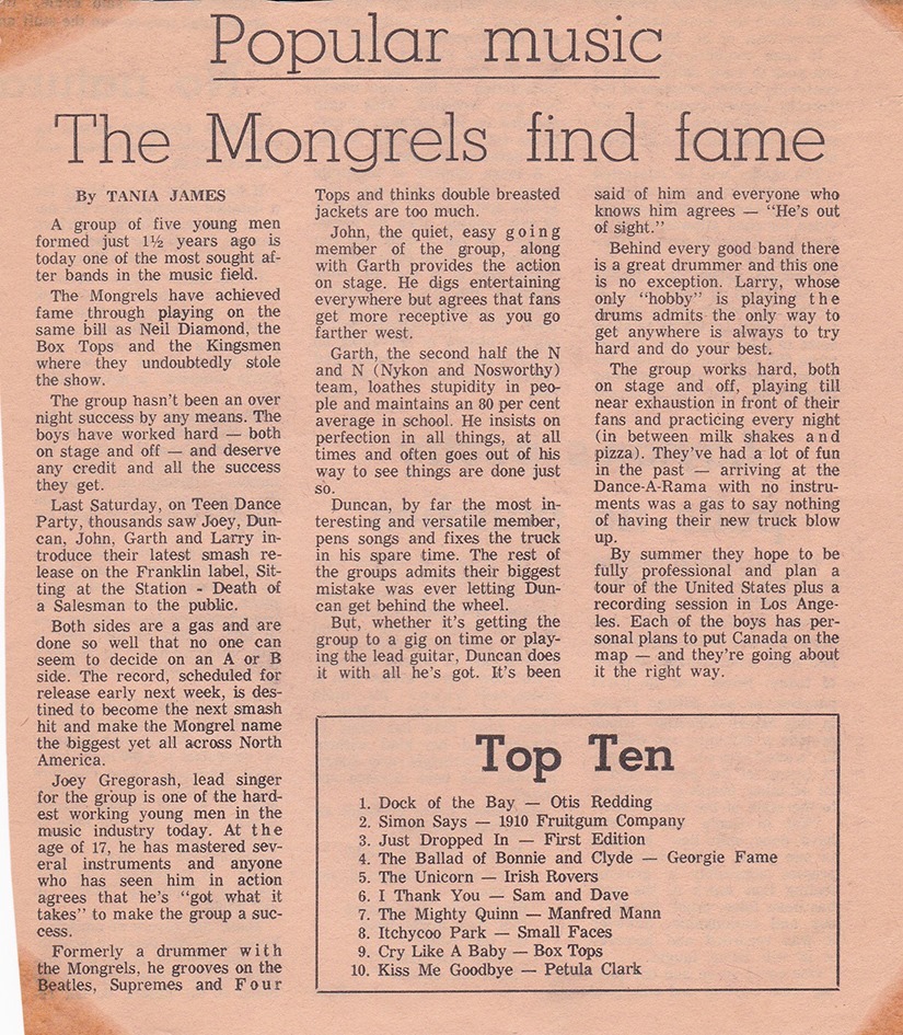 One of the more amusing stories from this period involved The Box Tops. The Mongrels shared a stage with them at a Winnipeg venue that had bands switch between an upstairs and downstairs performance area. When The Box Tops played their hit song The Letter, Joey and the Mongrels decided to follow it up by playing their own version of the song during their set. To Joey’s amusement, the crowd gave The Mongrels’ rendition an even bigger ovation than The Box Tops', making for a memorable moment. “I’ll leave it up to the audience to decide who did it better,” Joey joked.