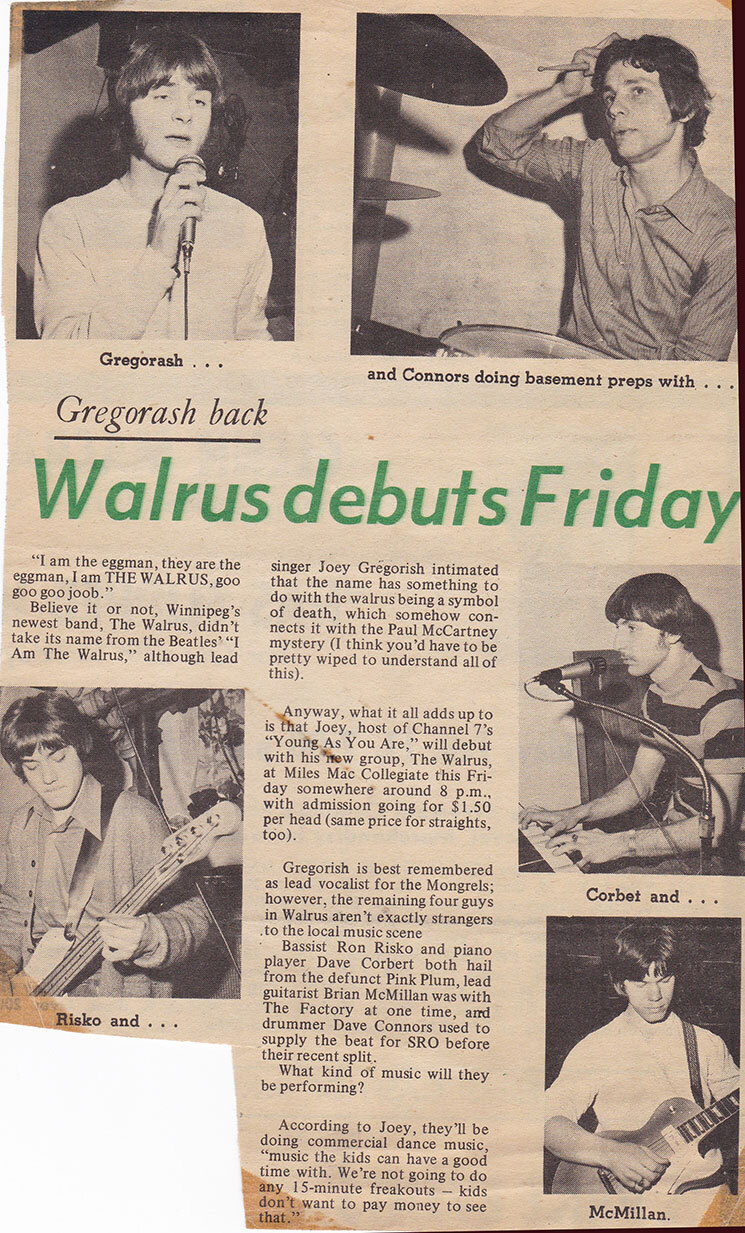 Their most notable moment came when they were booked to play at the Niverville Pop Festival, an event that was meant to be Winnipeg’s answer to Woodstock. Unfortunately, severe weather led to the festival being largely canceled, with only a few bands—including Walrus—managing to perform before the event was shut down. Joey recalls, “It was supposed to be something huge, but mother nature had other plans. Still, we played, and it was a moment I won’t forget.”