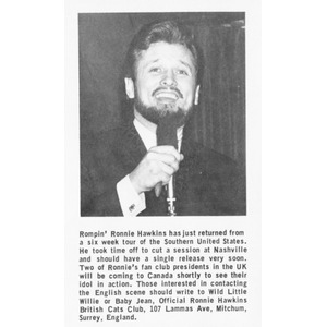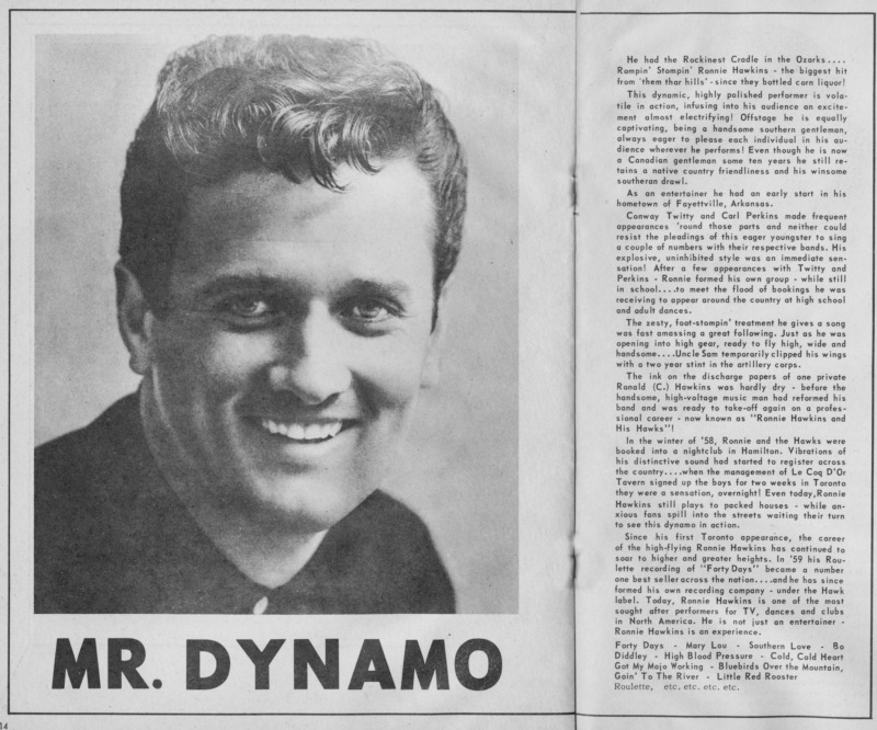 In 1958, on the recommendation of Conway Twitty – who considered Canada to be the promised land for a rock'n roll singer – Hawkins came to Hamilton, Ontario to play a club called The Grange. He never left. Adopting Canada as his home, Hawkins became a permanent resident in 1964.