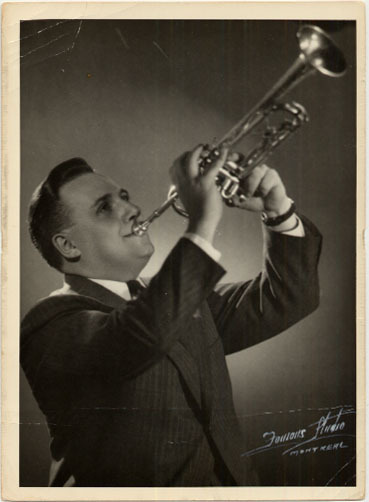 Johnny Holmes (John Joseph Harold Holmes, born in Montreal on June 8, 1916 – died there June 11, 1989) was a trumpeter, bandleader, arranger, and composer whose Orchestra became one of the cornerstones of Canadian jazz and light music. He picked up the cornet at the age of ten, studied briefly with C. Van Camp, and by 1940 had joined a cooperative band known as the Escorts. Within a year he had assumed leadership, renaming it the Johnny Holmes Orchestra, which he directed through 1950. The group held a Saturday night residency at Victoria Hall in Montreal that was broadcast nationally by CBC Radio, while also touring across Québec and Ontario. It became one of the city’s premier dance bands, admired for Holmes’ smooth arrangements and jazz sensibility, and for the steady stream of young musicians he identified and showcased. His Orchestra featured, at different times, Nick Ayoub, Al Baculis, Percy and Maynard Ferguson, Bud Hayward, Art Morrow, and the young Oscar Peterson. Singers Lorraine McAllister and Sheila Graham added further polish to the band’s sound.