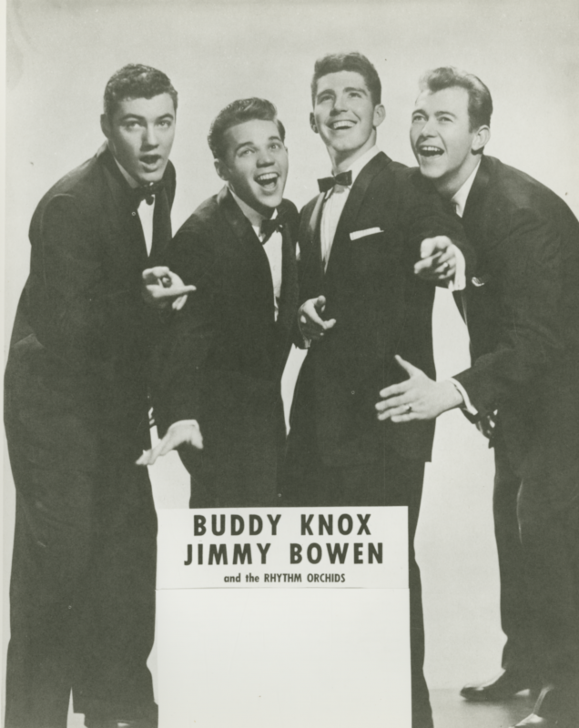 While a WTSC, Knox met two other students, Jimmy Bowen and Don Lanier. The three formed a band called the Rhythm Orchids, named after their orchid colored shirts they wore. They played in local clubs for beer and food, singing songs until they were thrown out for being under age, but Buddy Knox and the Rhythm Orchids had developed a following. They became the hottest local band around.