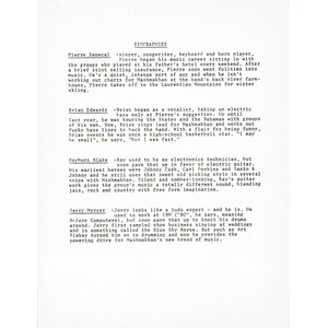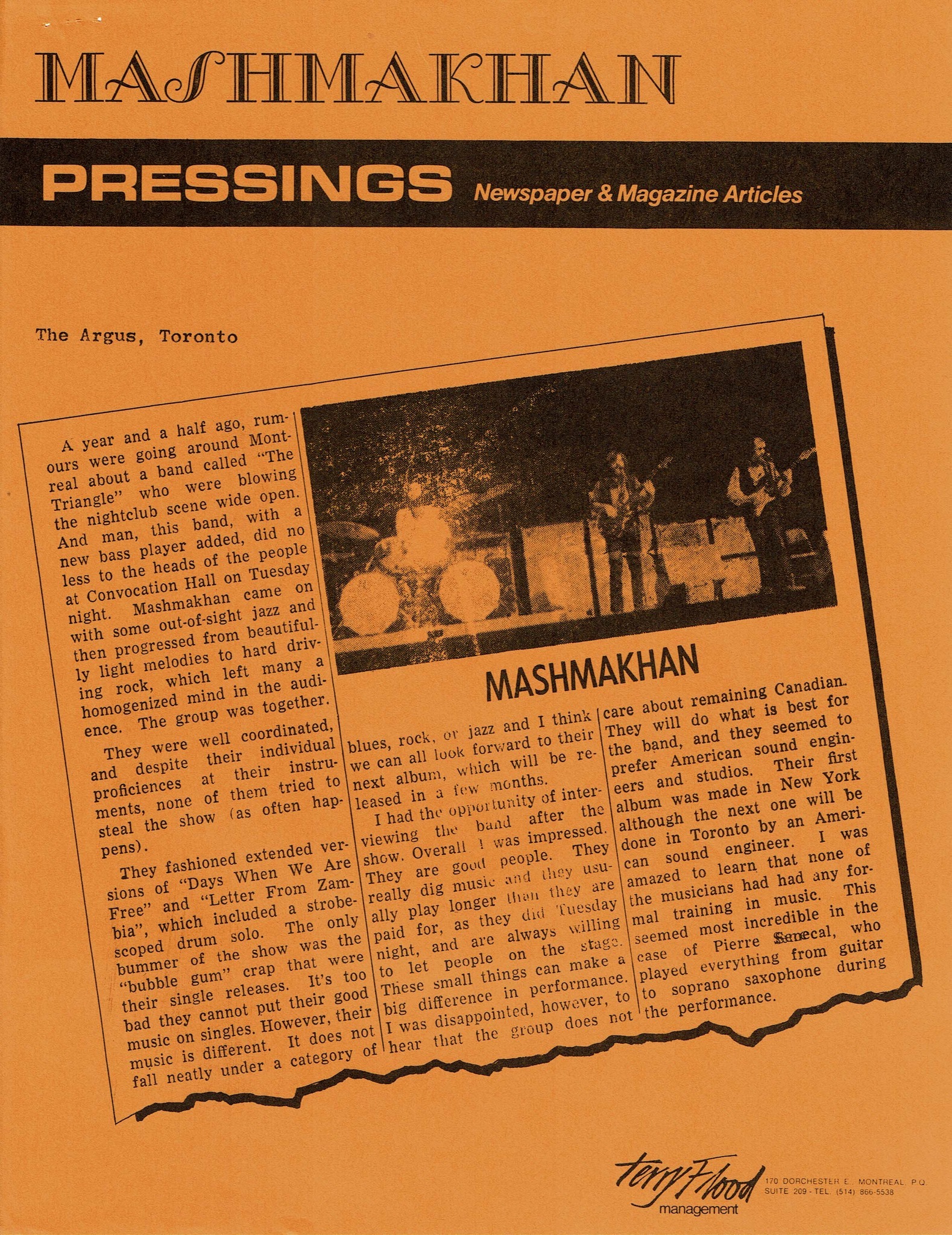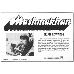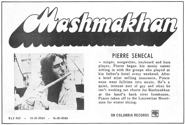 Mashmakhan. Montreal rock band. It evolved from a succession of groups in the 1960s - eg, the Phantoms, the Dominoes, and Triangle, the last backing R&B singer Trevor Payne - that included the songwriter Pierre Sénécal (vocals, keyboards, flute), Rayburn Blake (guitar), and Jerry Mercer (drums). On leaving Payne, the trio made their debut in February 1969 at a Montreal club, the Laugh In, and soon after gave the first rock concert heard at the NAC. The bass guitarist Brian Edwards was added, and the name of an exotic hallucinogen adopted, prior to the release in 1970 of the band's first LP, Mashmakhan (Col ELS 365).