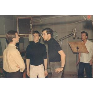 Hired for a weekend at the Boîte aux chansons in Old Quebec, next to the famous La Porte St-Jean cabaret, they performed there from the end of July until Christmas 1962. In the meantime, Yvan Dufresne, the famous impresario of the Apex company noticed them and had them cut not a simple 45 rpm, as was the custom at the time, but an entire album filled with the rhythm and sound of youth. The compositions of the group Mégatwist, Diane, Monsieur Solitaire and especially Rideau S.V.P. rub shoulders with the famous Ebb Tide and the classic Nut Cracker (Casse-noisette).
