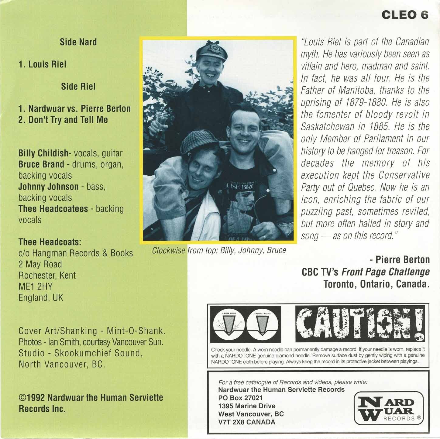 Thee Headcoats* Louis Riel Louis Riel