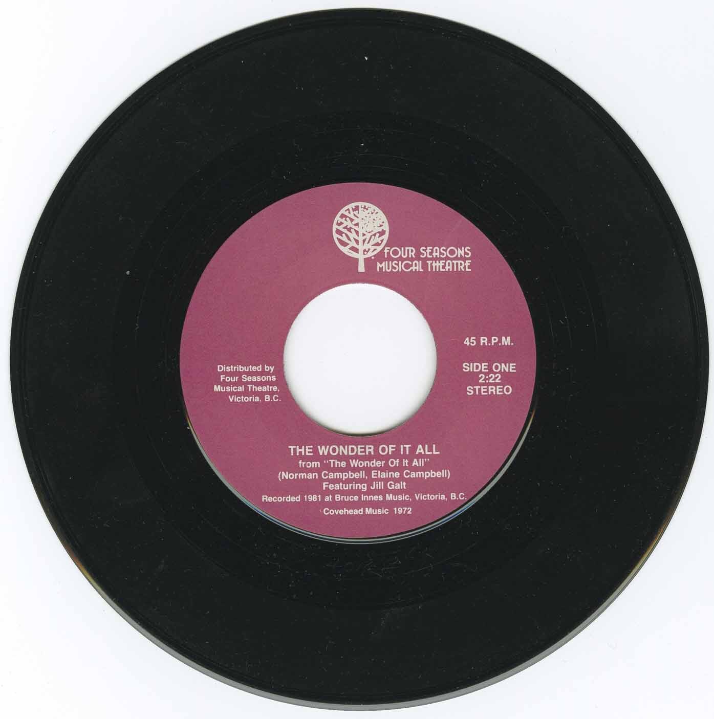 Campbell, Norman & Elaine featuring Jill Galt The Wonder Of It All The Wonder Of It All b/w I Think a Thing (A Musical Based On The Life Of Emily Carr) (picture sleeve)