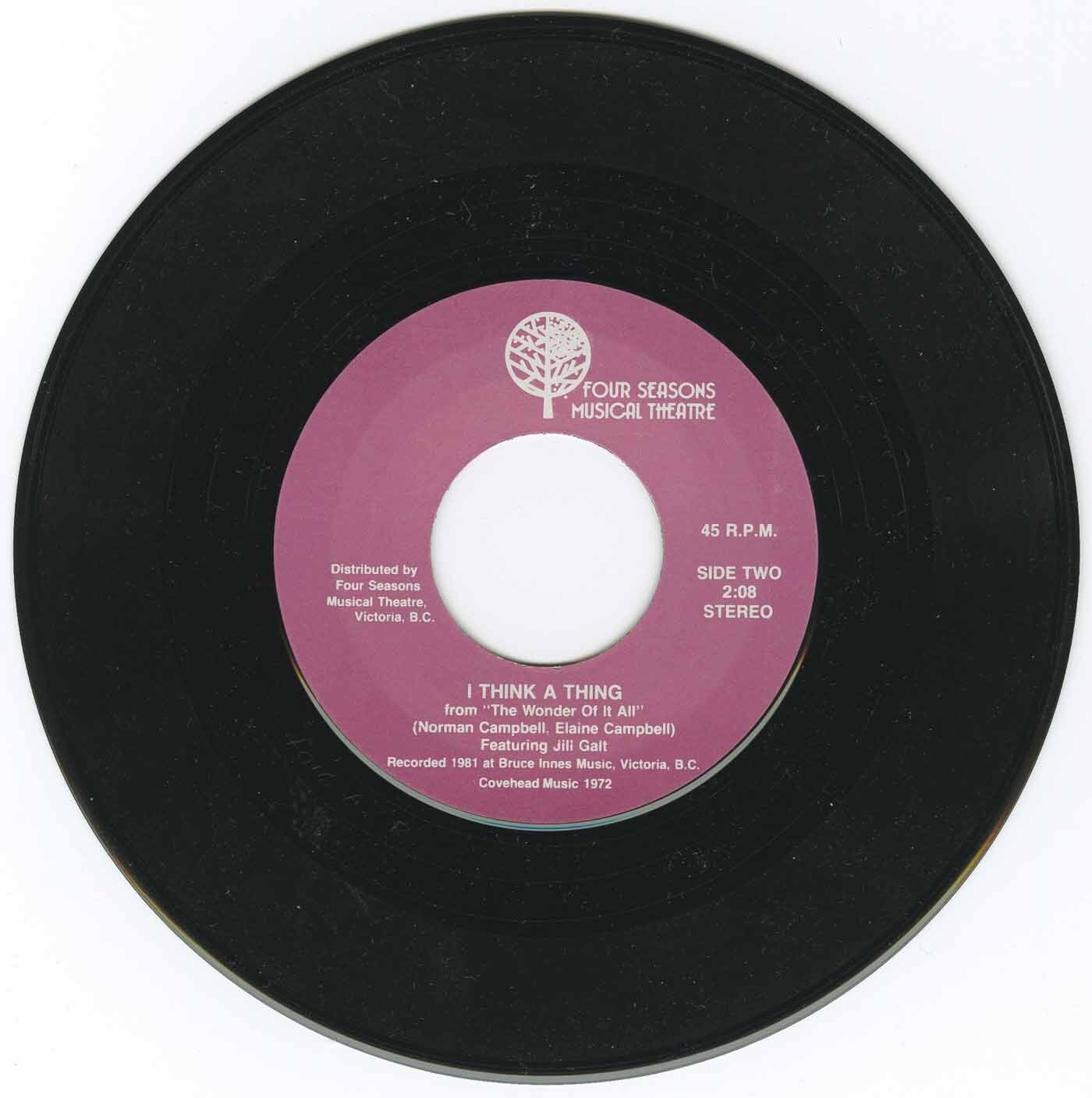 Campbell, Norman & Elaine featuring Jill Galt I Think a Thing The Wonder Of It All b/w I Think a Thing (A Musical Based On The Life Of Emily Carr) (picture sleeve)