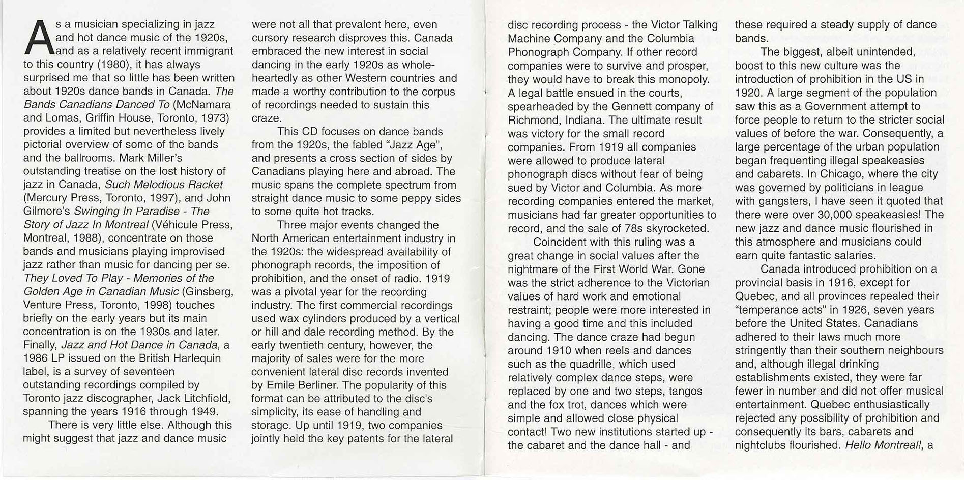 Jazz and Hot Dance in Canada: 1916-1949