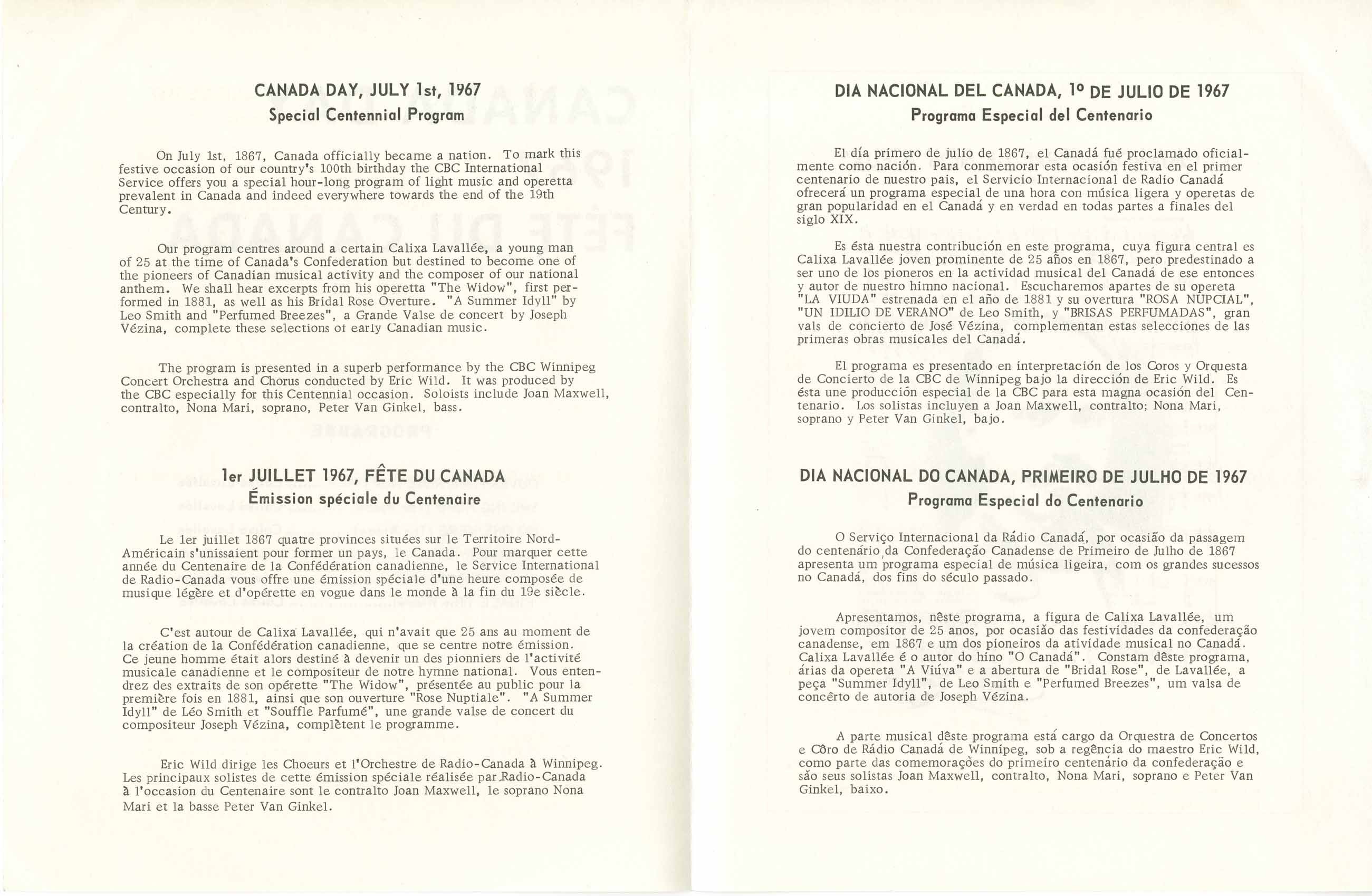 The Centennial Hymn b/w L'Hymne du centenaire (picture sleeve)