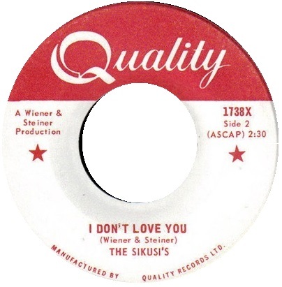 In 1965, the group recorded its lone single, "I Don't Love You" c/w "I Can Tell", for the local Quality Records label. (Some copies list the group as The Ookpiks, some The Sikusis, and some The Just Us). Soon afterwards, Ross and new drummer Al Morrison left to take part in the formation of The Bossmen around singer David Clayton-Thomas.