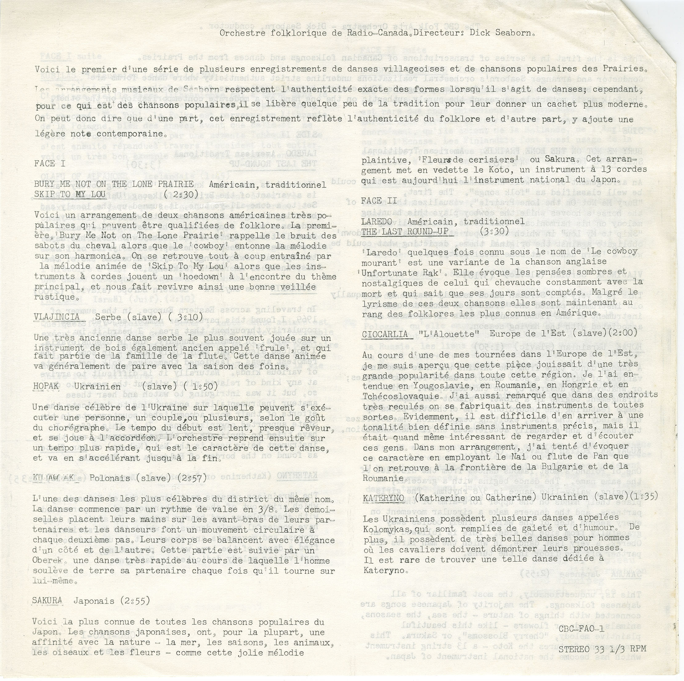 Presents Canadians All: A Musical Mosaic of Canadian Folk Songs & Dances from the Prairies: Directed by Dick Seaborn