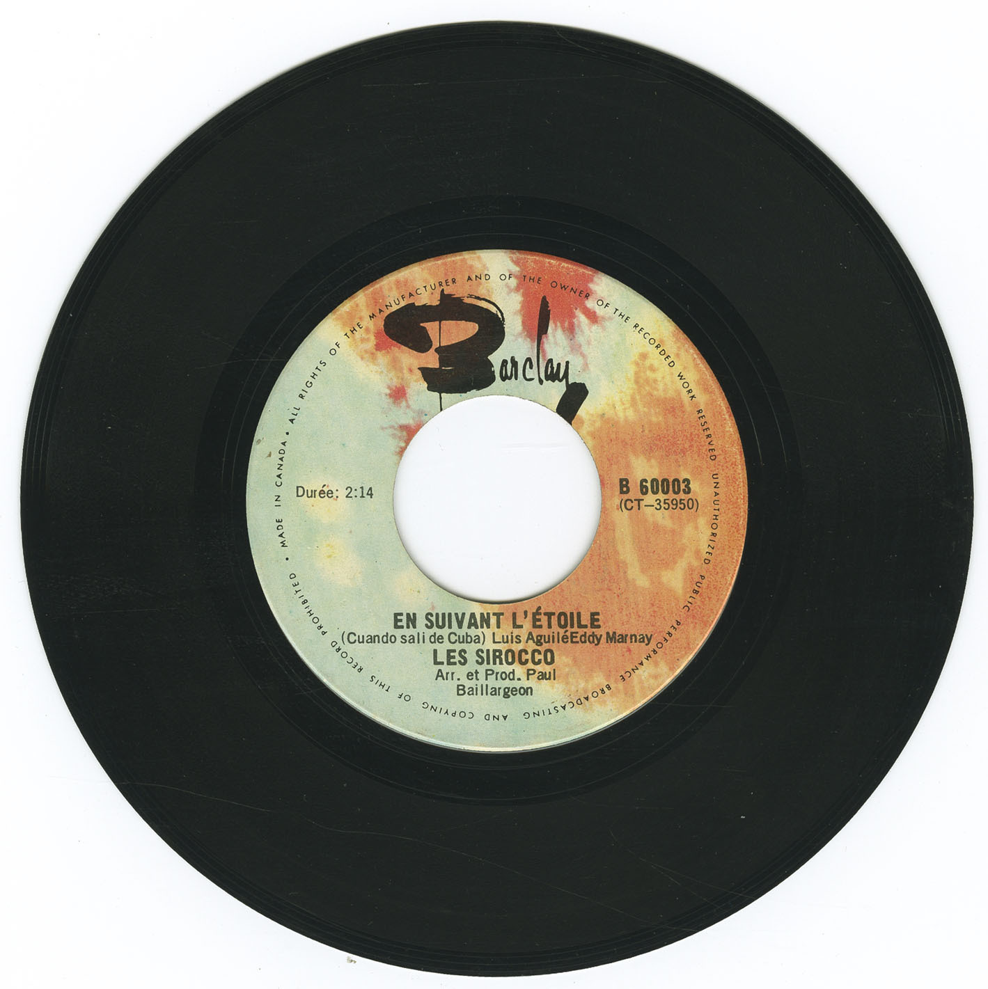 | Sirocco, Les | En suivant l'etoile (Cuando sali de Cuba) (Luis Aguile) | C'est que je t'aime b/w En suivant l'etoile (Cuando sali de Cuba) | 02:15 | |